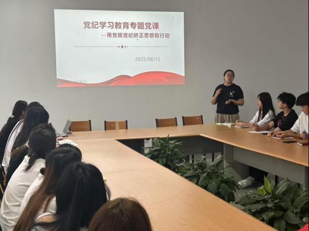 为深入学习贯彻中央八项规定精神, 2025年6月12日,必威BETWAY西汉姆联员工党支部在力行楼L1306组织开展专题党课。本次党课以“用党规党纪矫正思想和行动”为主题,由员工党支部书记李晗主讲,全体入党积极分子和发展对象参加。