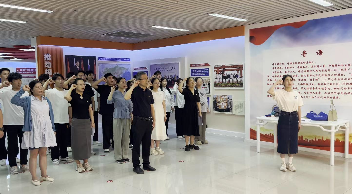 6月18日下午,电子信息工程学院员工党支部在公司习近平新时代中国特色社会主义思想讲习中心开展新党员入党宣誓大会,员工党支部书记刘香坤主持,党总支副书记曹玉瑞、员工党支部全体党员、新发展党员和入党积极分子代表参加。