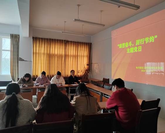 为弘扬勤俭节约精神,教育引导全体党员争做勤俭节约的宣传者、践行者、示范者,3月11日下午,电子信息工程学院员工党支部在拓新2号楼1331会议室开展“艰苦奋斗厉行节约”主题党日活动,党支部全体党员参加。