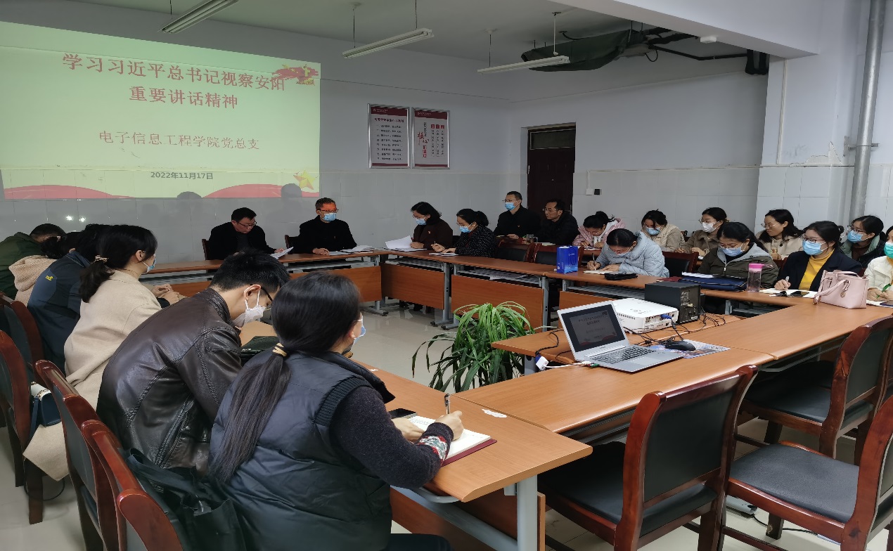11月17日,电子信息工程公司党总支在拓新2号楼1331会议室召开全体党员大会,传达学习习近平总书记在安阳考察时的重要讲话精神,会议由党总支书记奚建刚主持。
