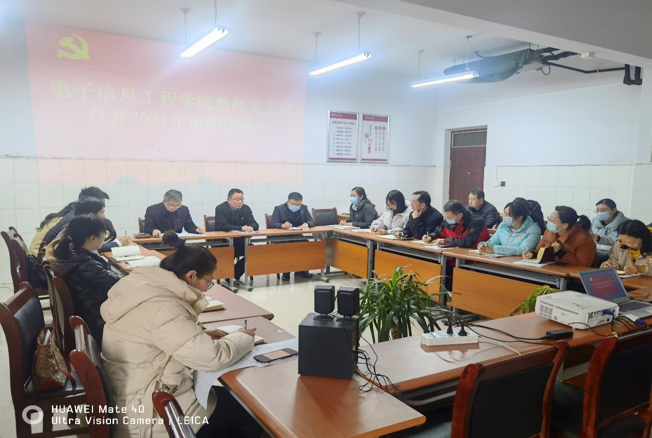 最后,奚建刚指出组织生活会中大家以诚相待,提出的问题与建议都很有针对性,会议开的非常成功,借此机会对全体党员提出三点要求:一是要旗帜鲜明讲政治、讲规矩讲大局,在深学细悟中增强“四个意识”、坚定“四个自信”、做到“两个维护”;二是加强理论学习,积极参加各类党建活动,做到理论学习与专业学习相结合;三是要有奉献精神,在工作中起到先锋模范作用,认真贯彻学校第二次党代会精神,在学校双高校建设、“十四五”规划、能力作风建设活动中走在前、争先锋,争取以更优异的成绩迎接党的二十大胜利召开。