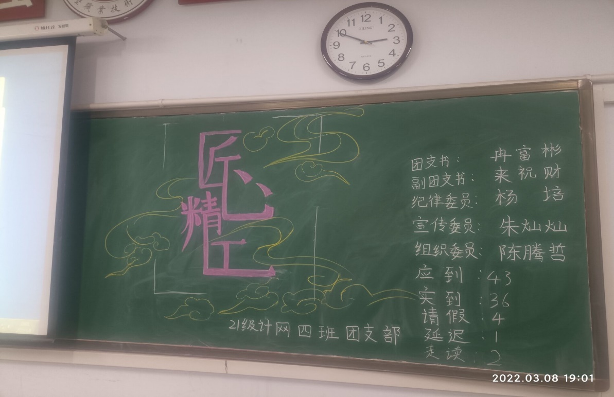 为进一步弘扬劳模精神、劳动精神、工匠精神, 2022年3月8日晚,电子信息工程学院团总支组织各班团支部开展弘扬“工匠精神”主题团会,共计20个班800余名同学参加。
