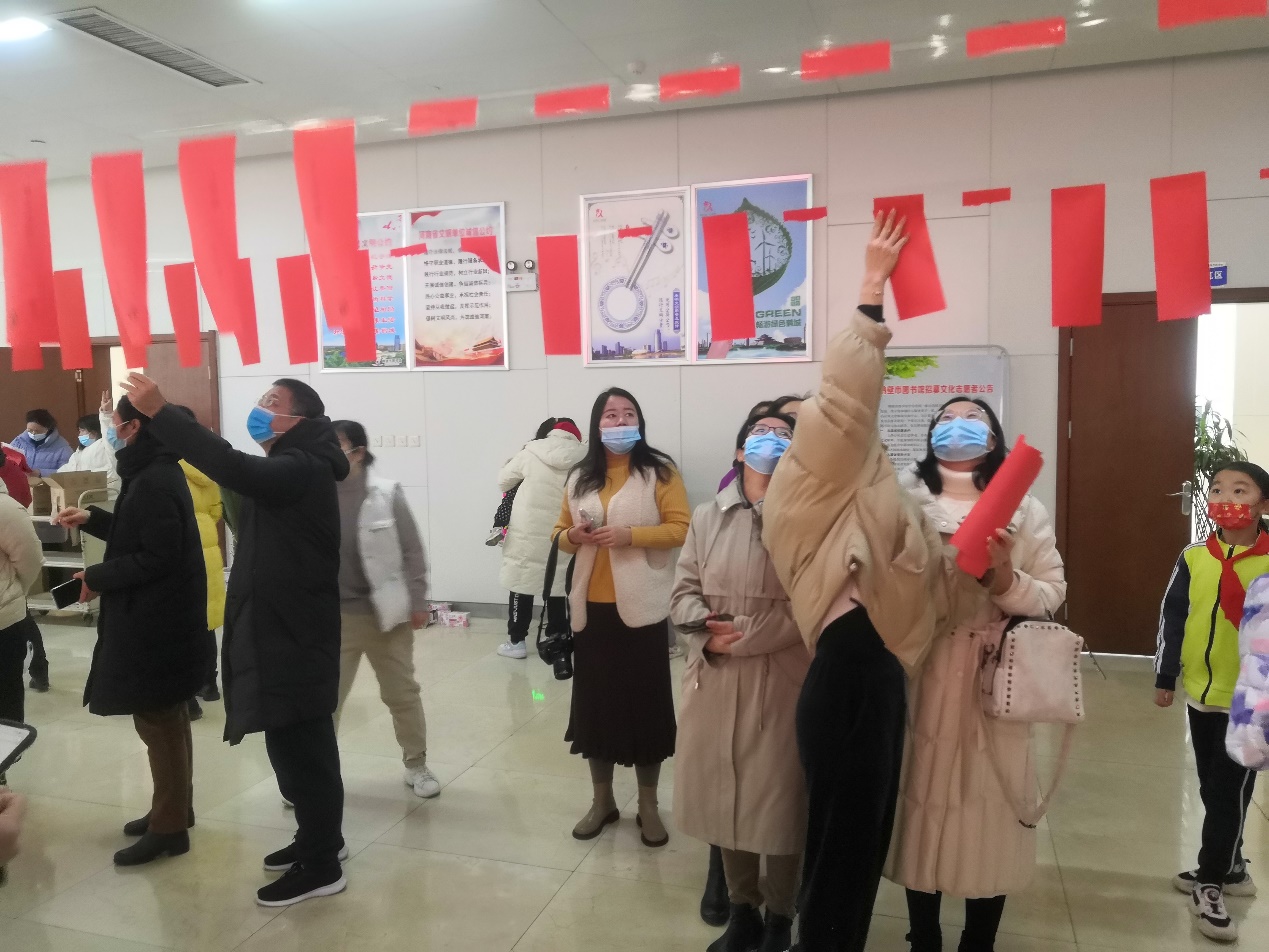 活动现场整齐地挂满了一条条红色谜语,谜面涉及内容非常广泛,包含党史知识、冬奥会知识、地名、历史人物、成语等。参加活动的党员教师们兴致盎然,开动脑筋,三五成群的聚在一起讨论谜底,爆发出阵阵欢笑声,活动现场氛围喜庆而热烈,整个活动现场洋溢着浓浓的节日气氛。