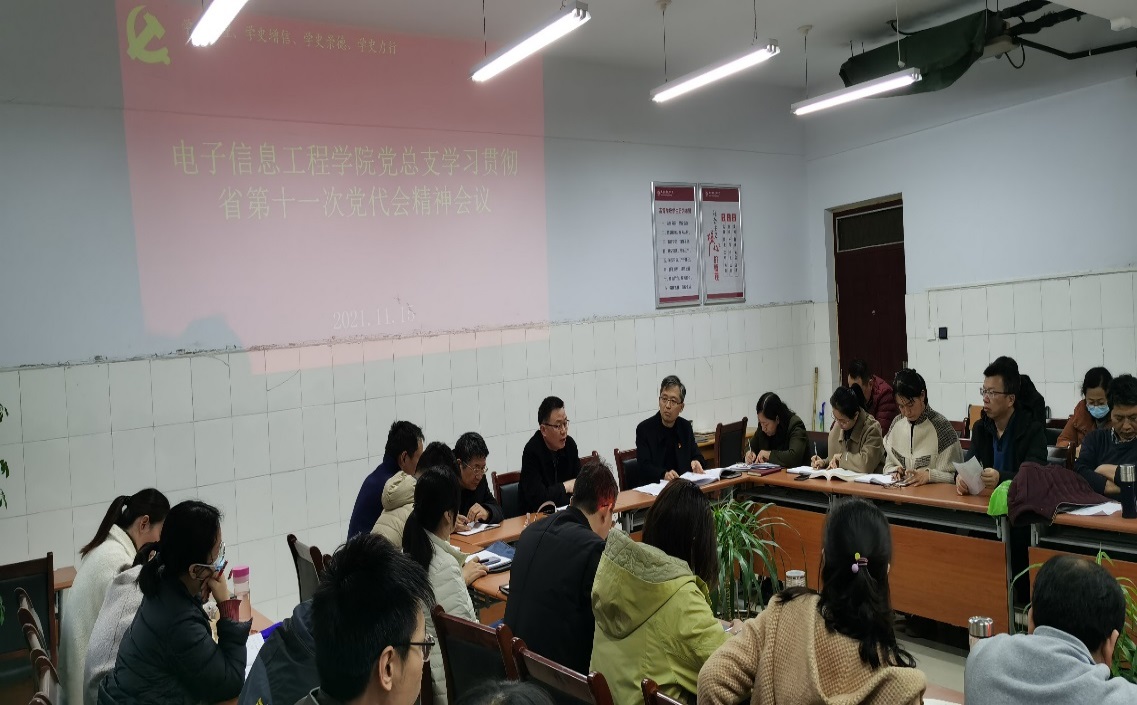 11月15日下午,电子信息工程学院在拓新2号楼1331会议室召开大会,传达学习省第十一次党代会精神,安排部署贯彻落实工作。党总支书记奚建刚主持,全体教师参加。