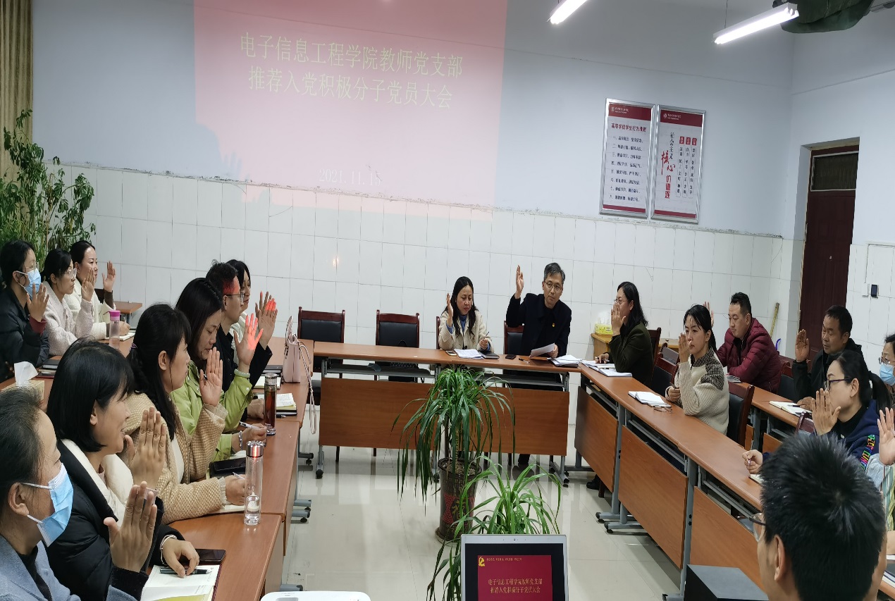 11月15日下午,电子信息工程学院教师党支部在拓新2号楼1331会议室召开推荐入党积极分子党员大会。会议由党支部书记曹玉瑞主持,全体党员教师参加。