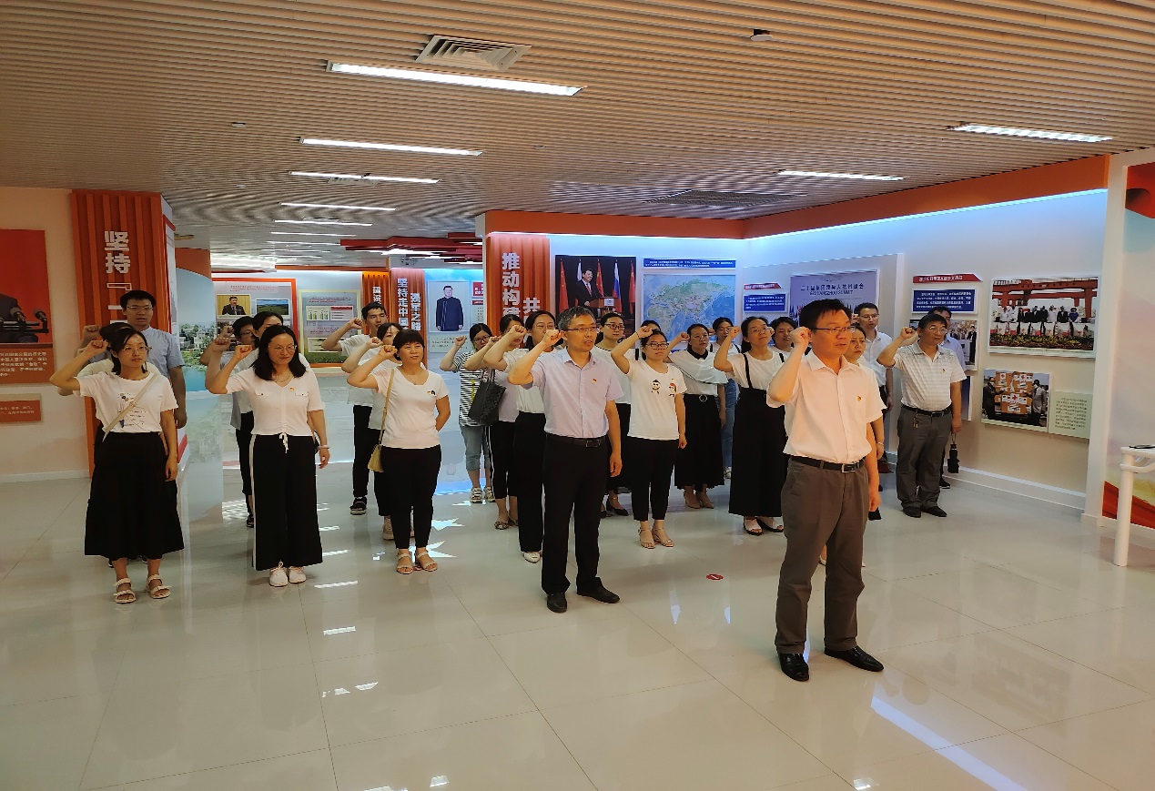 参观结束后,在党总支书记奚建刚的带领下,全体党员面向党旗,重温了入党誓词。