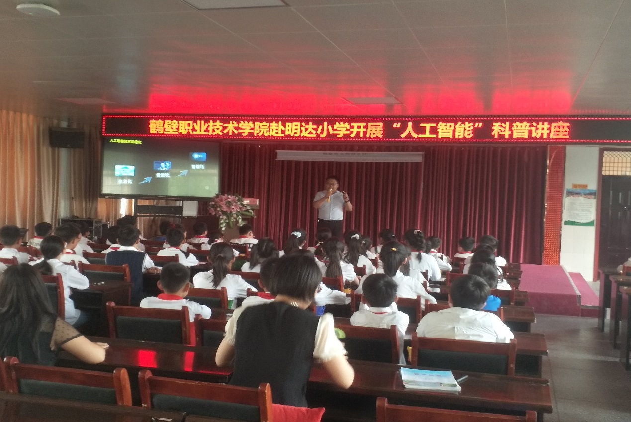 2021年6月10日,bw必威西汉姆联官网电子信工程学院赴明达小学开展“人工智能技术”科普知识进校园活动,邀请华为资深技术专家杜红奎老师以“人工智能技术现状与未来”为主题做专题知识讲座。