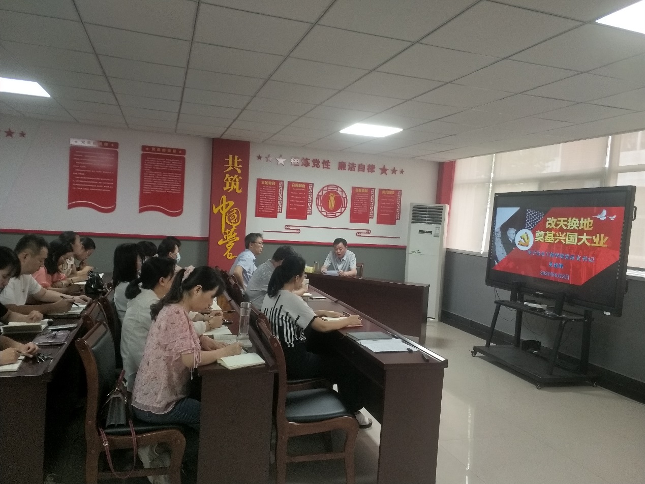 6月3日下午,电子信息工程公司党总支书记奚建刚以“改天换地奠基兴国大业”为主题,在拓新一号楼二楼本科部会议室为党员师生讲党课。全体教师党员、员工预备党员、入党积极分子代表等70余人参加,会议由副书记曹玉瑞主持。