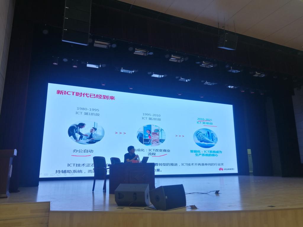2021年5月27日下午,电子信息工程学院邀请华为培训讲师杜红奎在学校诚信礼堂开展以《ICT国产化大背景下人才战略》为主题学术讲座,全体教职工、相关专业200余名员工参加。