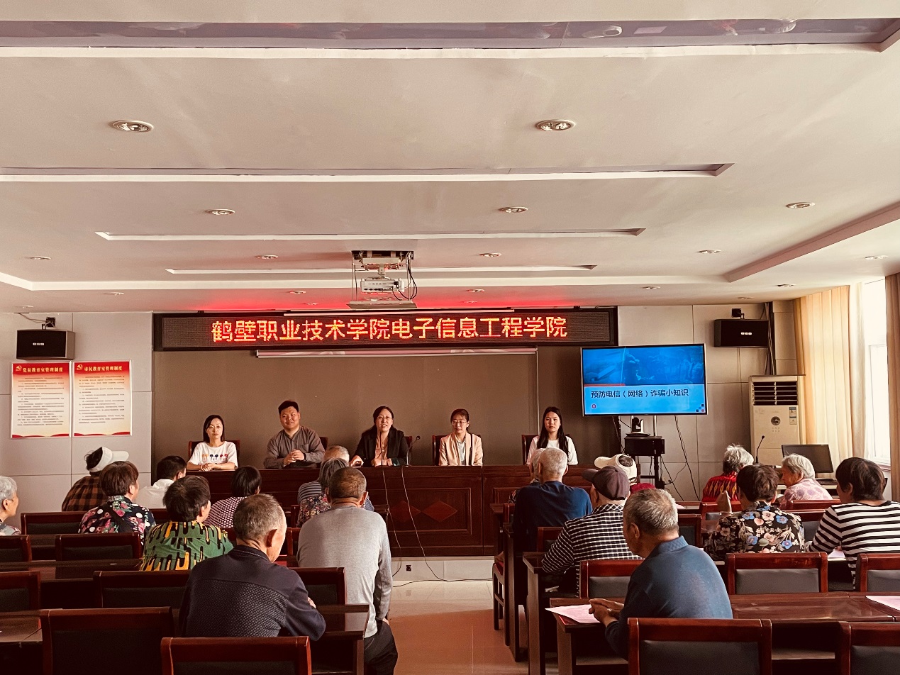 根据学院2021年职业教育活动周的相关工作安排,5月27日上午,电子信息工程学院赴湘江社区开展预防电信网络诈骗宣讲公益服务活动,由通信教研室骨干教师杨彬主讲,部分教师、员工代表以及社区60余名居民参加。