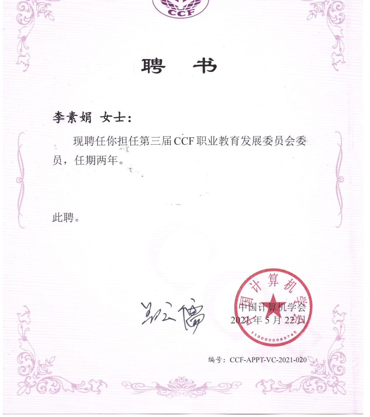 本次会议由中国计算机学会(CCF)主办,CCF 职业教育发展委员会承办,山东电子职业技术学院协办。本次会议举办了“课堂革命”、“课程思政”专题论坛,广东交通职业技术学院等兄弟院校的代表以课证融通、教学能力比赛等为切入点,分享了课堂教学改革成果;山东电子职业技术学院等高校分享了课程思政的经验和成果。并举办了第三届CCF VC换届会议及三届一次常委扩大工作会议。公司李素娟老师被聘为第三届CCF职业教育发展委员会委员。