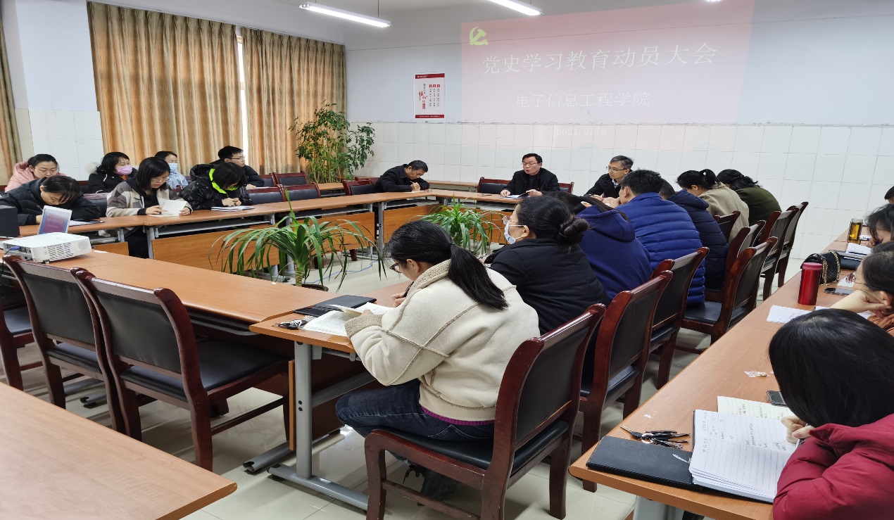 2021年3月18日下午,电子信息工程学院在拓新2号楼1331会议室召开党史学习教育动员大会,奚建刚书记主持,全体教职工参加。