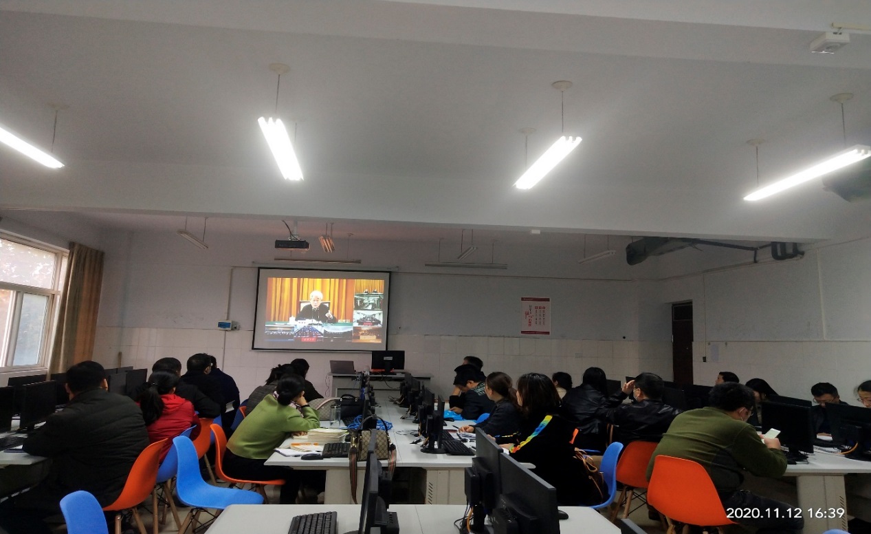 2020年11月12日下午,电子信息工程学院组织教职工在1237教室收看教育部召开的教育系统党的十九届五中全会宣讲报告视频会议,党总支副书记曹玉瑞主持,26名教师参加。