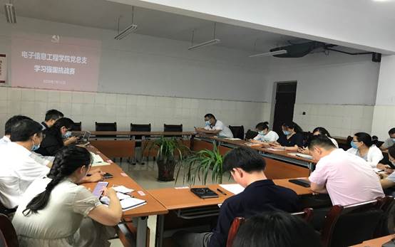 根据公司党委宣传部关于“‘豫学习豫出彩’—第二届‘学习强国’河南省千万学员万场答题挑战赛初赛”活动的部署要求,2020年7月12日上午,电子信息工程公司党总支在1331会议室开展了“学习强国”挑战赛初赛活动,全体党员教师参加。