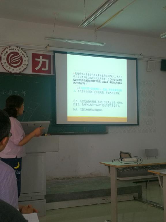 讲座开始,晋处长带领大家逐条解读了《科学道德规范(试行)》条例,指出了违反诚信规则的严重后果,分析了违反诚信规则的具体事例,用案例让大家体会到遵守诚实信用规则的重要性。随后,晋处长就高职院校教师科研策略、项目的申报、选题等方面为大家进行了详细的讲解。