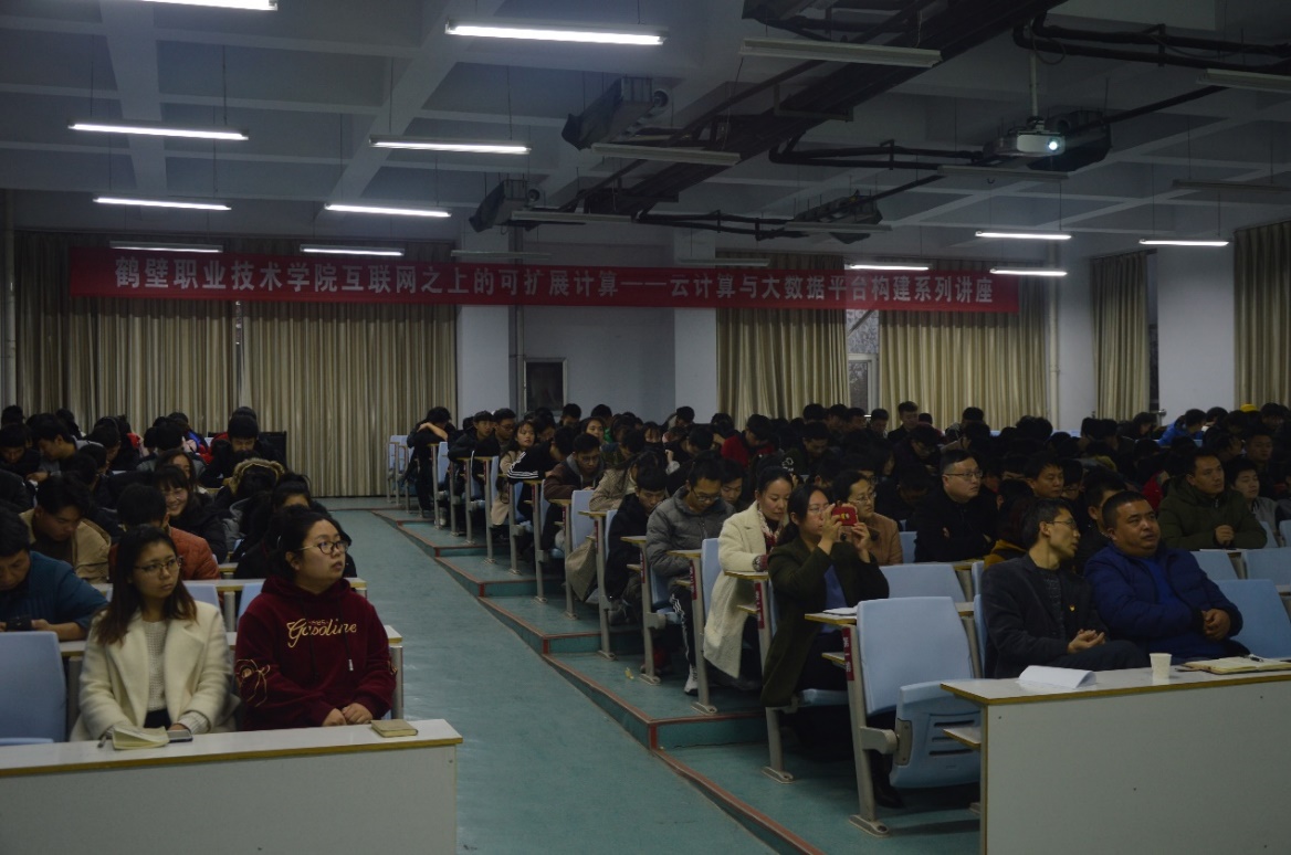 2018年11月22日下午,电子信息工程学院、科研外事处与鹤壁城市云计算中心联合邀请曙光星云首席架构师岳强博士,在老员工活动中心2楼报告厅举办了“云计算与大数据”专题讲座,电子信息工程学院师生300多人参加。