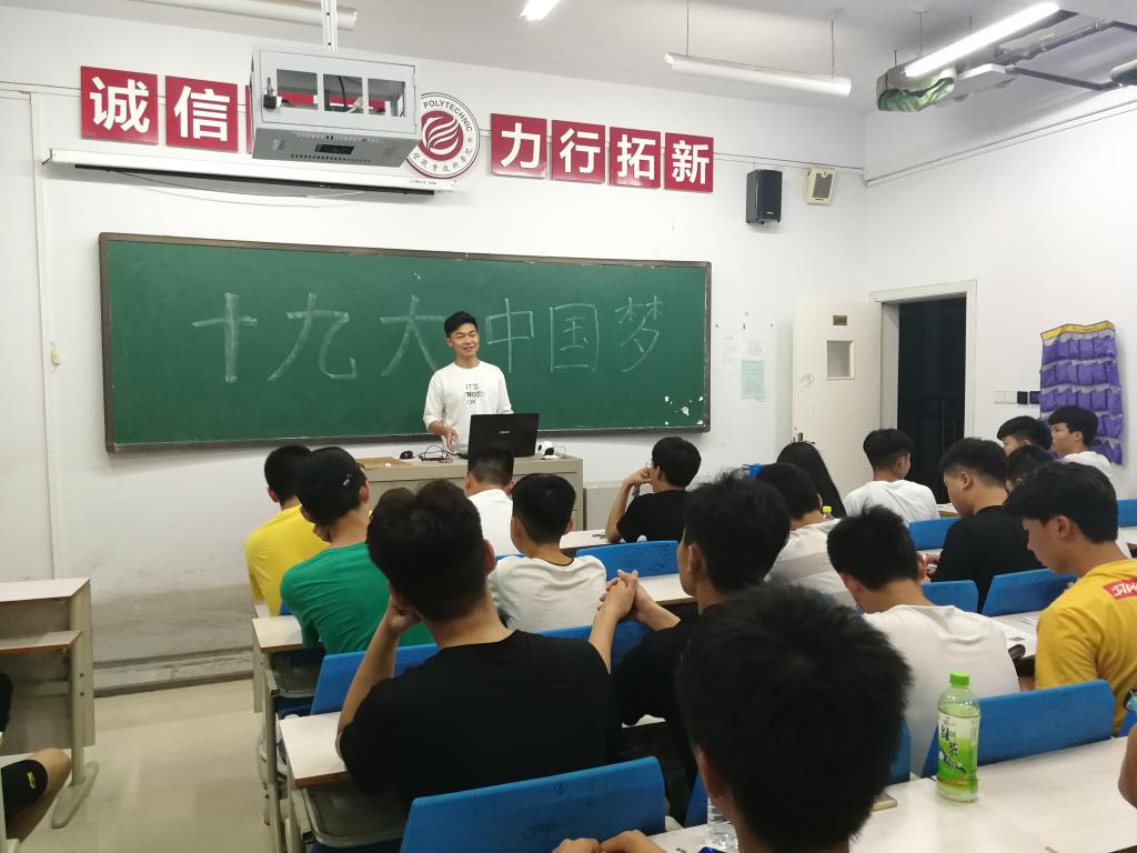 2018年6月20日晚,电子信息工程学院在3612教室举行了“党的创新理论万场宣讲进班级”宣讲报告活动,16级五年制通信三、四班80余名员工认真聆听了报告,其辅导员曹英迪、17级前端设计2班员工唐卓铭以“学习贯彻习近平新时代中国特色社会主义思想,不忘初心”为主题,围绕中原崛起步伐以及身边的点点滴滴,阐述了新一代中原人、新一代青年人的中国梦,报告会上大家就新时代中国梦展开了热烈的讨论。