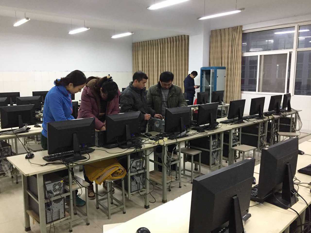 2016年12月7日教研活动时间,安排完相关教学事宜之后,在教研室主任杨建强的带领下,计算机教研室的所有老师到1320、1326、1328等院系机房参加了义务维修活动。