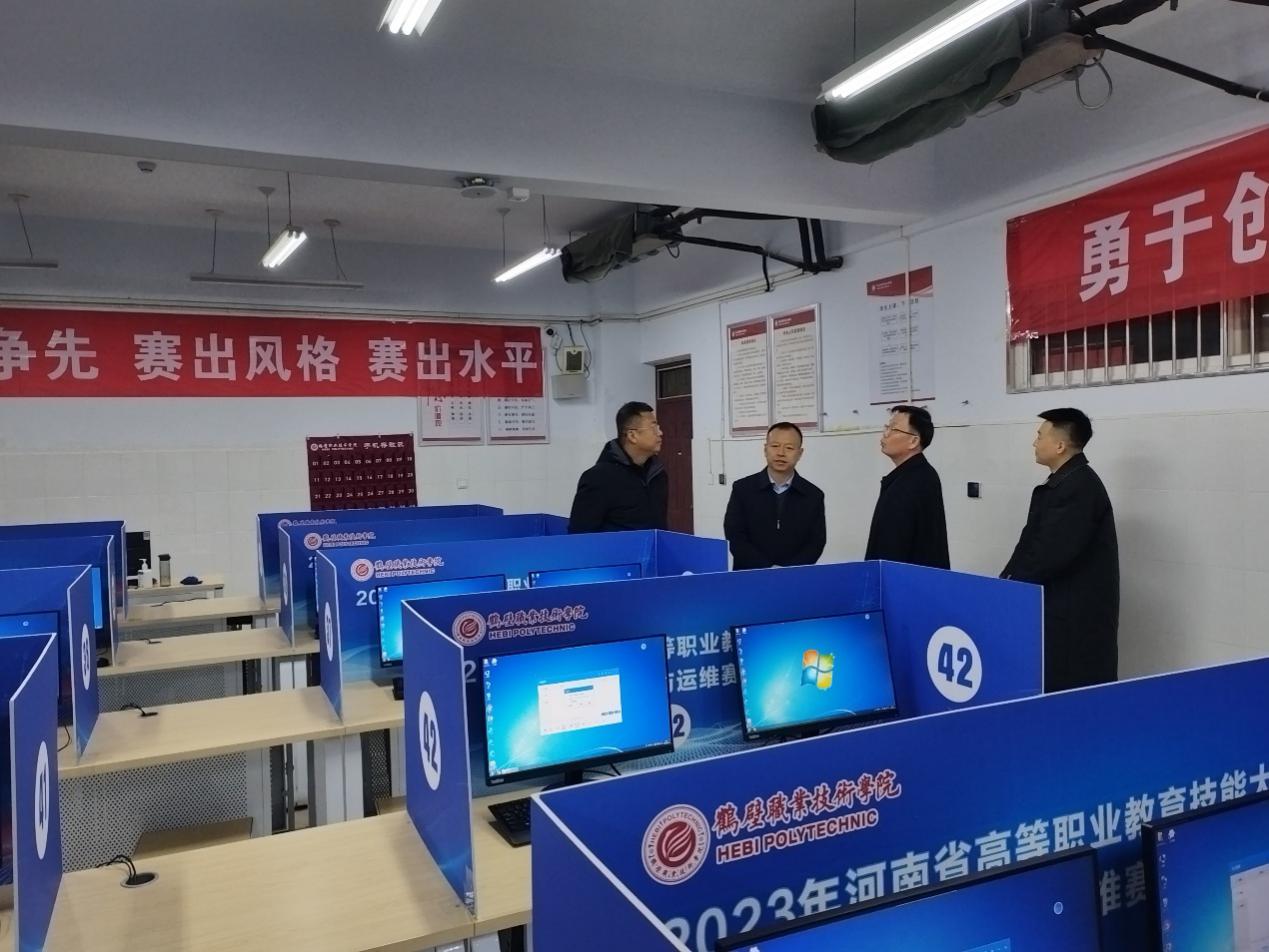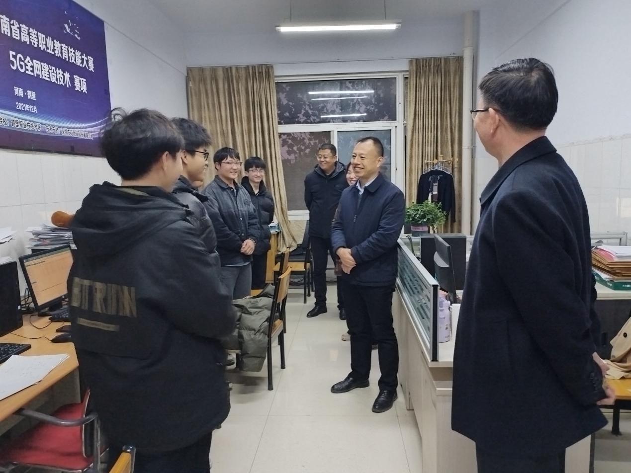 为高标准、高质量完成学校承办的2023年河南省高等职业教育技能大赛“5G组网与运维”赛项选拔赛任务,11月30日下午,副董事长杨志波在教务处处长侯铁兵、电子信息工程公司党总支书记奚建刚等陪同下,实地查看了比赛场地的筹备和布置情况,认真听取了比赛相关筹备情况汇报,详细了解了竞赛设备、赛前安排、赛项服务、后勤保障、氛围布置等。杨志波强调,各部门要紧密配合,进一步加强协作、通力配合,全力保障大赛顺利进行。