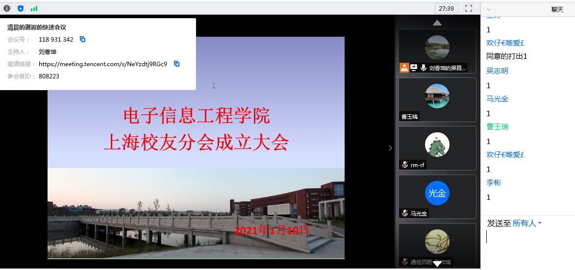 2021年1月10日,电子信息工程学院上海员工分会通过腾讯会议召开。电子信息工程学院副经理李王辉、党总支副书记曹玉瑞、华晟项目部经理王雷、银河项目部经理李彬以及在上海和其他地区工作的员工共襄盛举,参加了此次大会。