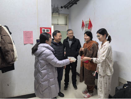 随后刘晓和班子成员带着刚出锅的饺子,深入员工宿舍,将冬至的祝福和深深的关怀送到每一位同学的心间。他们与员工亲切交流,询问学习进展、生活状况及实际需求,并鼓励大家在即将到来的期末考试中奋力拼搏,争取优异成绩。